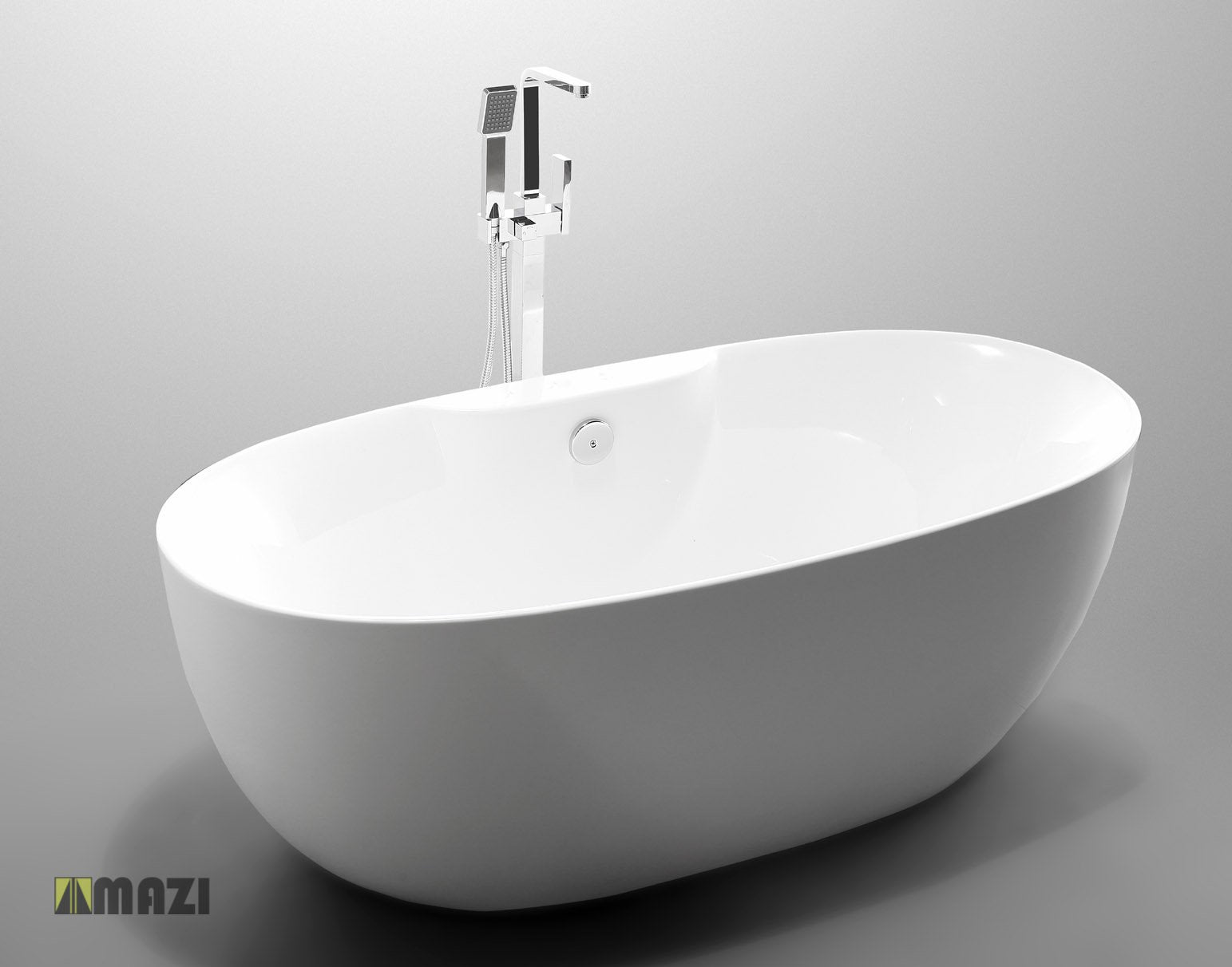 Freestanding Acrylic Soaking Tub, luxurious and elegant style. Full fiberglass construction with acrylic topcoat for high durability and shine. Large bathtub for full body immersion.
