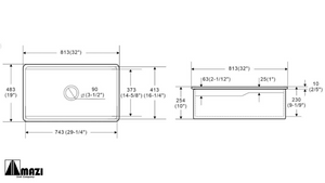 MAZI offers a fresh take on the classic Ceramic Kitchen Undermount Sink. The smooth, non-porous surface of the vessel sink is naturally durable and hygienic. For an easy-to-clean high-gloss finish, each bathroom sink is protected with a premium baked-on glaze. This sink can be installed above counter or semi-recessed for all your stylish bathroom ideas. Pair it with a classically inspired Ventus faucet for additional value and create an instant style upgrade for less. This Bundle includes a Cutting Board, Strainer, Sink Grid, Flexible Matt, and the Sink itself.