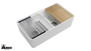 MAZI offers a fresh take on the classic Ceramic Farm Sink. The smooth, non-porous surface of the farm sink is naturally durable and hygienic. For an easy-to-clean high-gloss finish, each farm sink is protected with a premium baked-on glaze. This sink adds a dramatic visual appeal but also enhances functionality, allowing for easy access during food preparation and cleaning. These sinks are fired at extremely high temperatures, resulting in a dense, non-porous surface that is resistant to chipping, scratching, and staining.