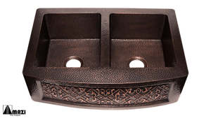 MAZI copper kitchen sinks are handmade and represent an incredible value while adding a luxurious and unique focal point to your kitchen design. Handcrafted from pure solid 16-Gauge copper by skilled artisans. Our copper kitchen sink is guaranteed to be the highlight of your kitchen.
