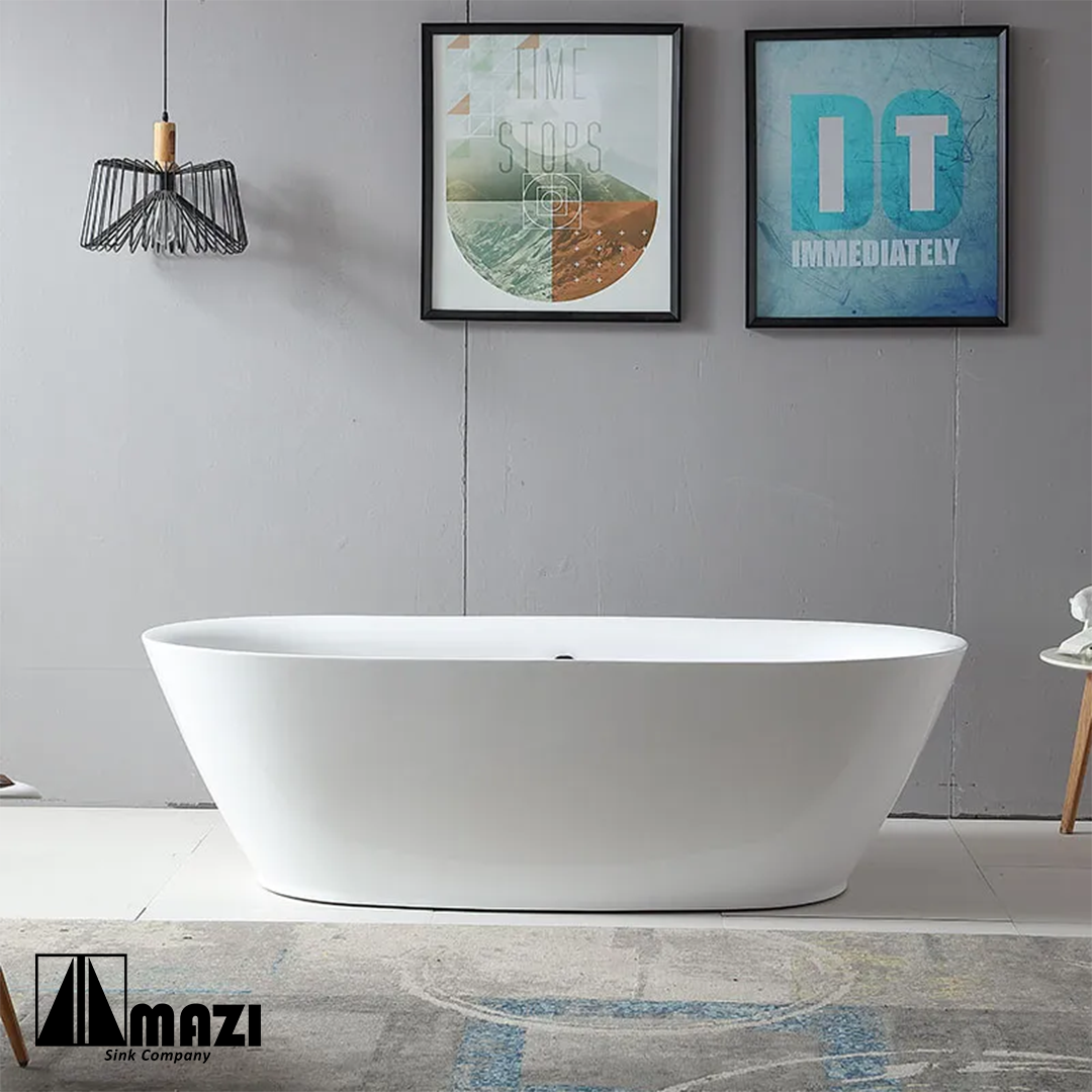 Freestanding Acrylic Soaking Tub, luxurious and elegant style. Complete fiberglass construction with acrylic topcoat for high durability and shine. Large bathtub for total body immersion.
