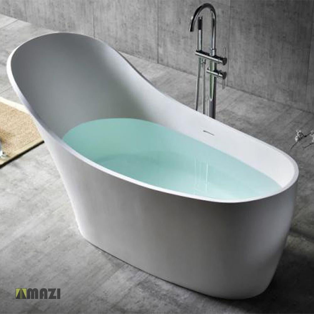 Freestanding Solid Surface Soaking Tub, luxurious and elegant style. Complete fiberglass construction with acrylic topcoat for high durability and shine. Large bathtub for total body immersion.