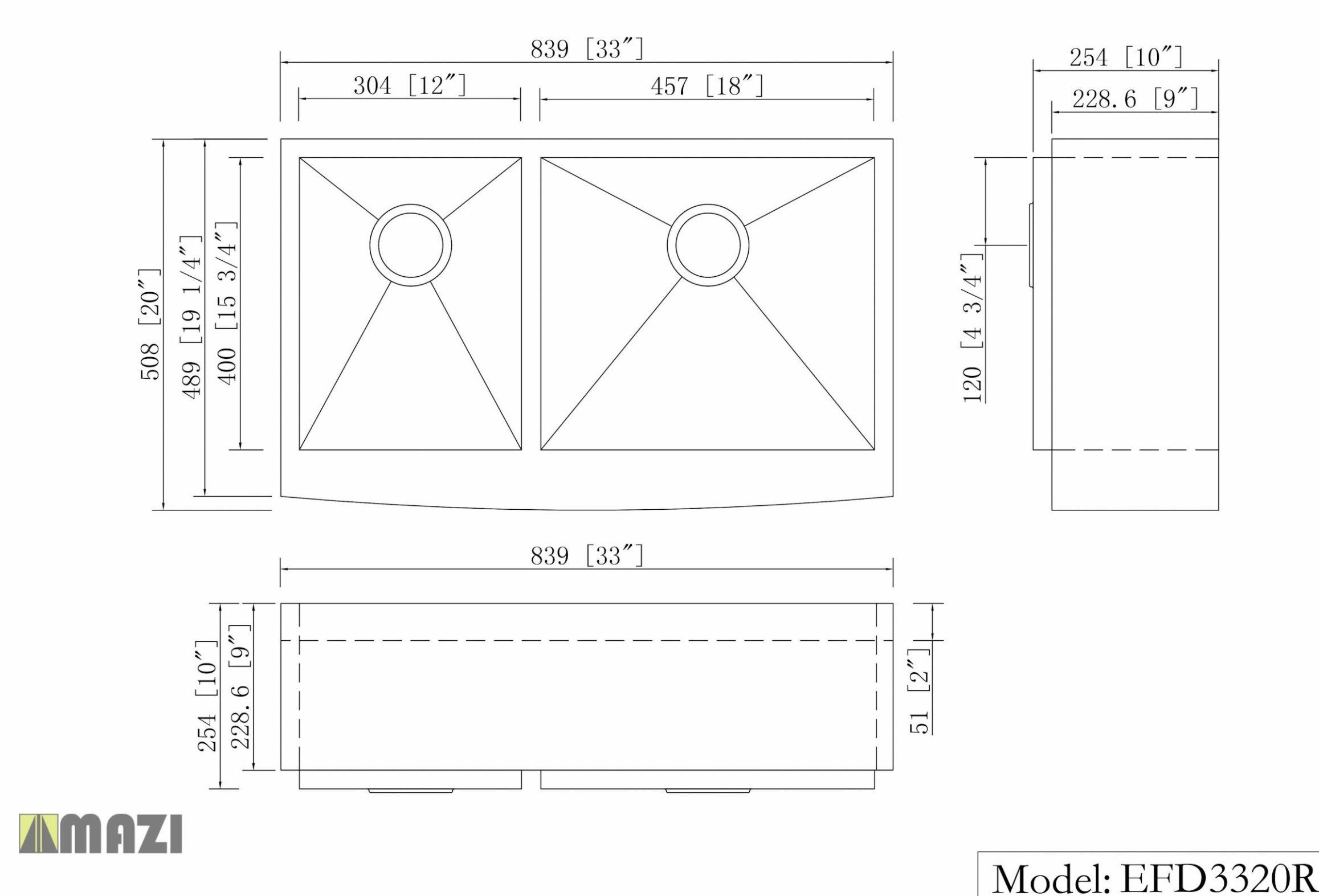 MAZI stainless steel sinks combine fashion with functionality for the kitchen. This sink is considered (60/40) as the left bowl is larger than the right bowl. Our sinks are made of 18-Gauge (also available in 16-Gauge) stainless steel for maximum durability. All kitchen sinks have top-level soundproofing, including thick rubber dampening pads, reducing condensation and further dampening sound. A unique finishing process protects the corrosion-resistant surface from rust and oxidation. All mounting hardware is available for purchase under the Accessories section.