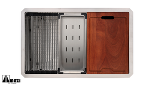 MAZI stainless steel sinks combine fashion with functionality for the kitchen. Our sinks are made out of 16-Gauge stainless steel for maximum durability. All kitchen sinks are equipped with top-level soundproofing, including thick rubber dampening pads, which reduce condensation and further dampen sound. The corrosion-resistant surface is protected from rust and oxidation by a special finishing process.