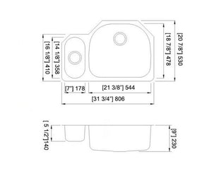 Right Basin Dimensions: L 31-3/4 in. x W 20-7/8 in. x D 5-1/2 / 9 in.